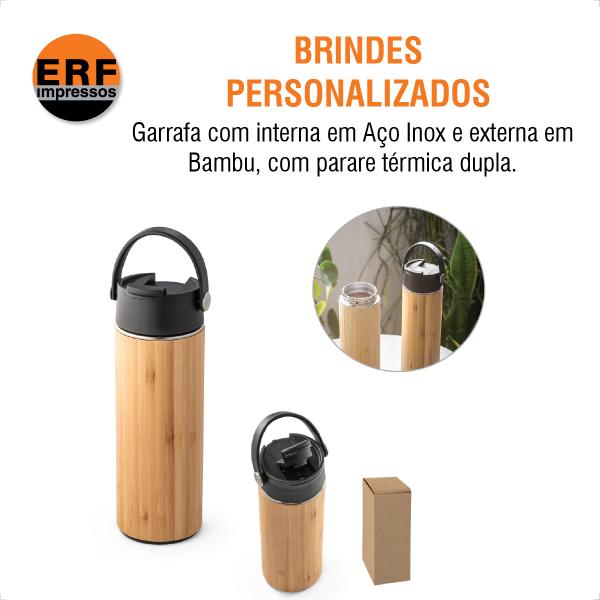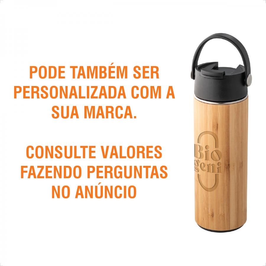 Início Brindes Personalizados Garrafa com interna em Aço Inox e externa em Bambu, com parede térmica dupla. Formato: 8,1x18,17cm Material: Aço inox e PP Produção: 5 dias úteis Consultar Valor Este produto está disponível apenas para consulta. Entre em contato conosco, iremos analisar e lhe retornar com os detalhes.